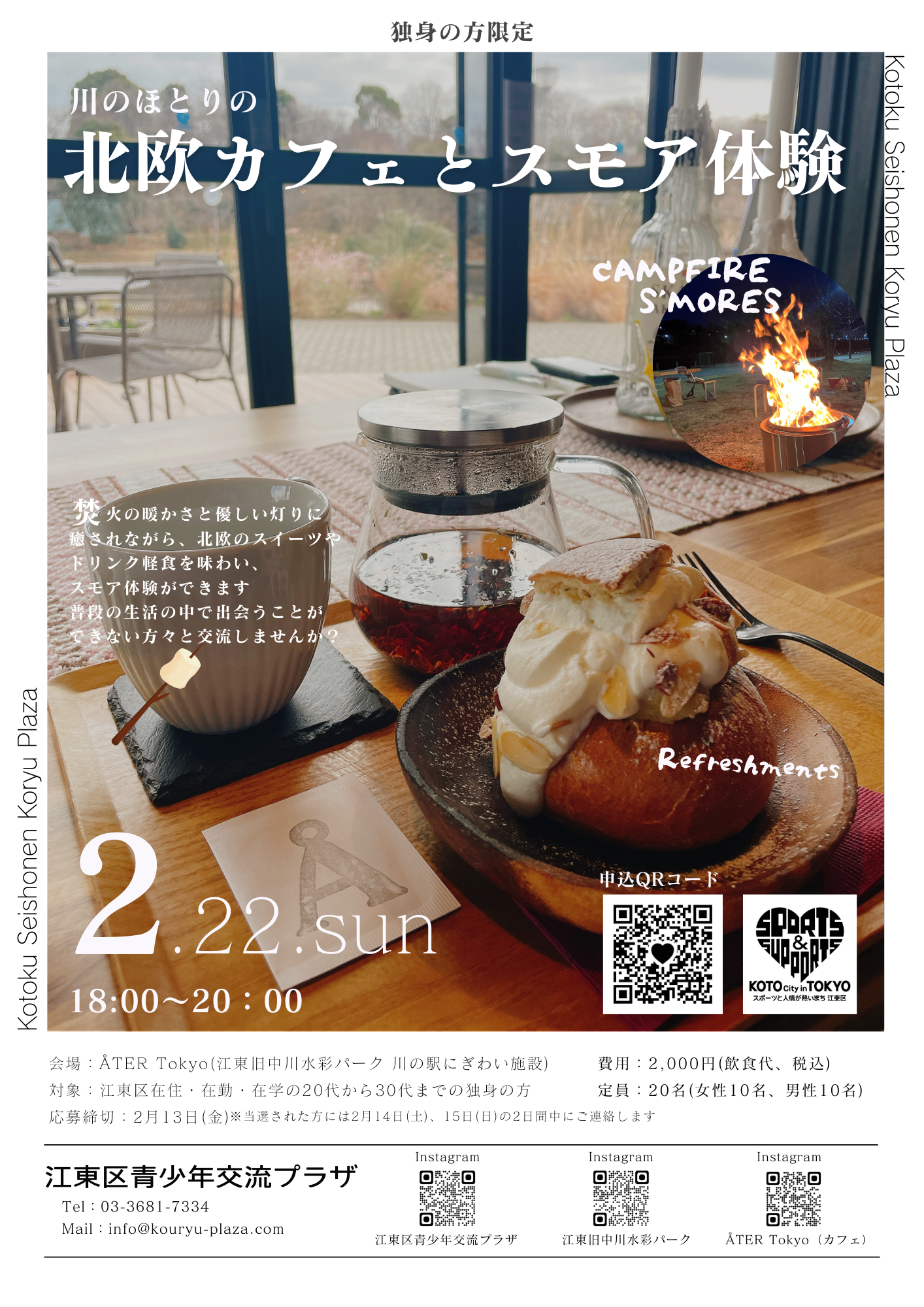 "独身の方限定"川のほとりの北欧カフェとスモア体験のご案内