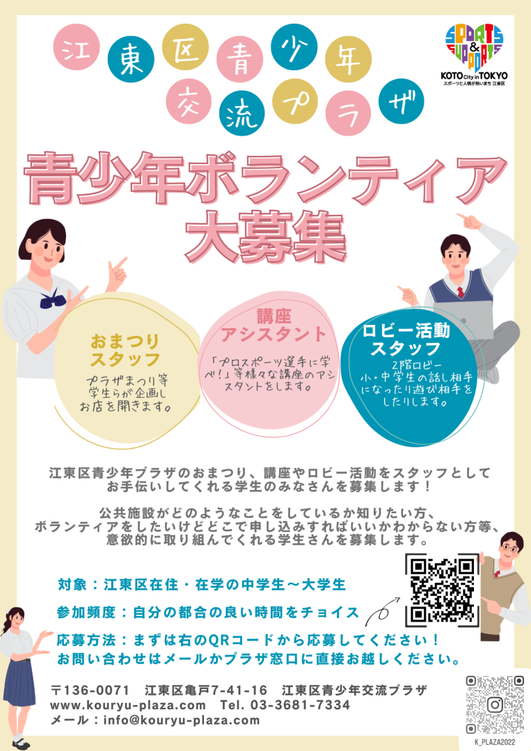 江東区青少年交流プラザで青少年ボランティアに登録しませんか?