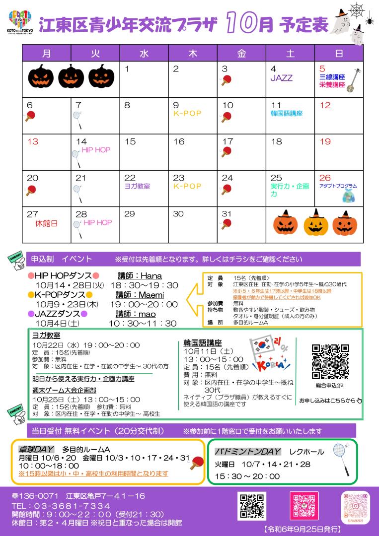 10月のイベントスケジュール等を掲載した予定表を発行しました🎃