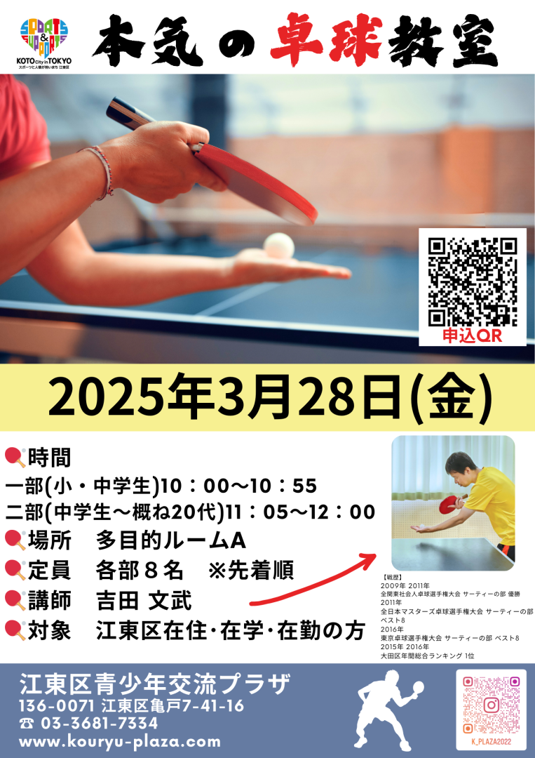 毎回ご好評をいただいている吉田先生による本気の卓球教室を開催!!